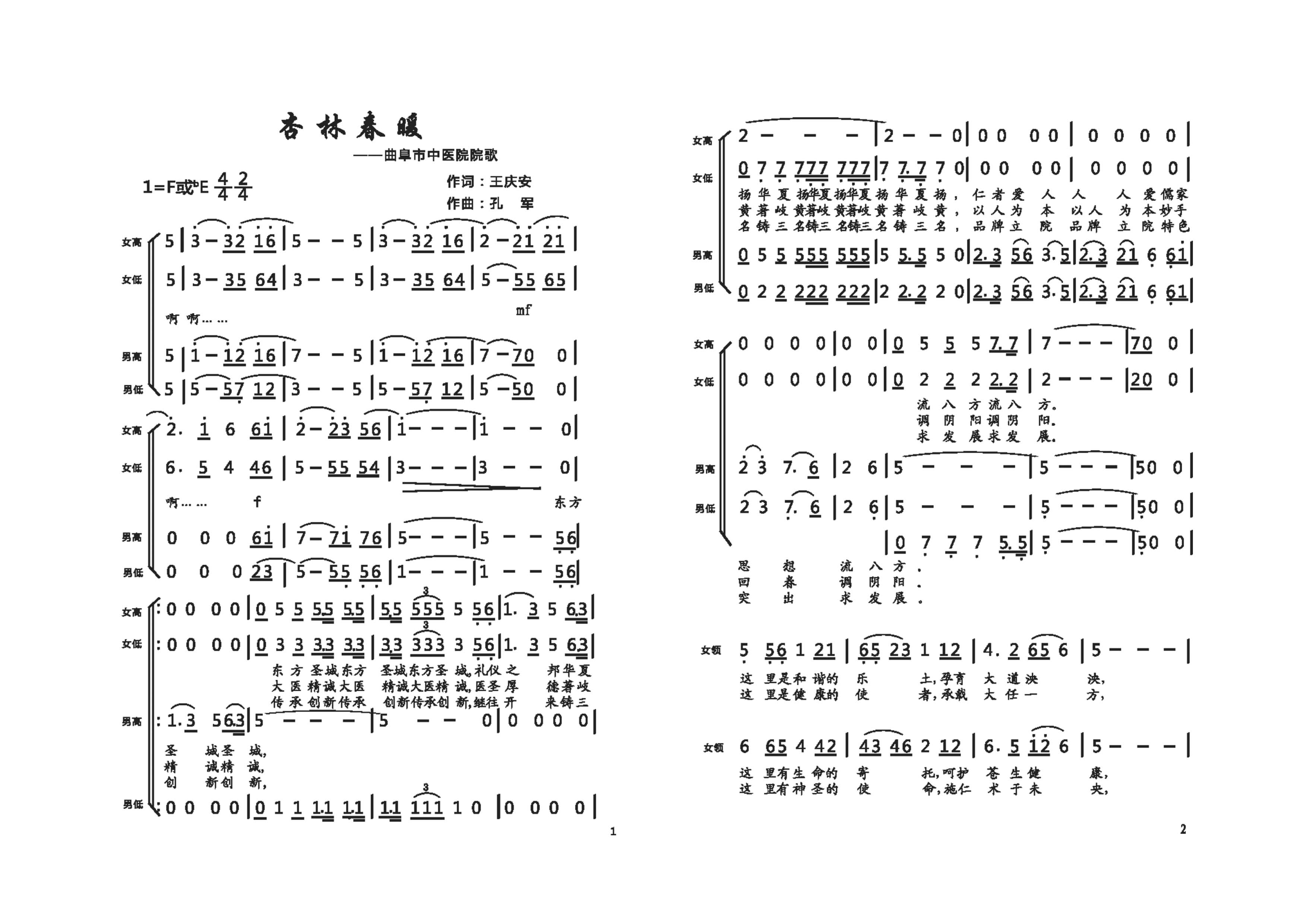 曲阜市中医医院医院文化--院歌《杏林春暖》
